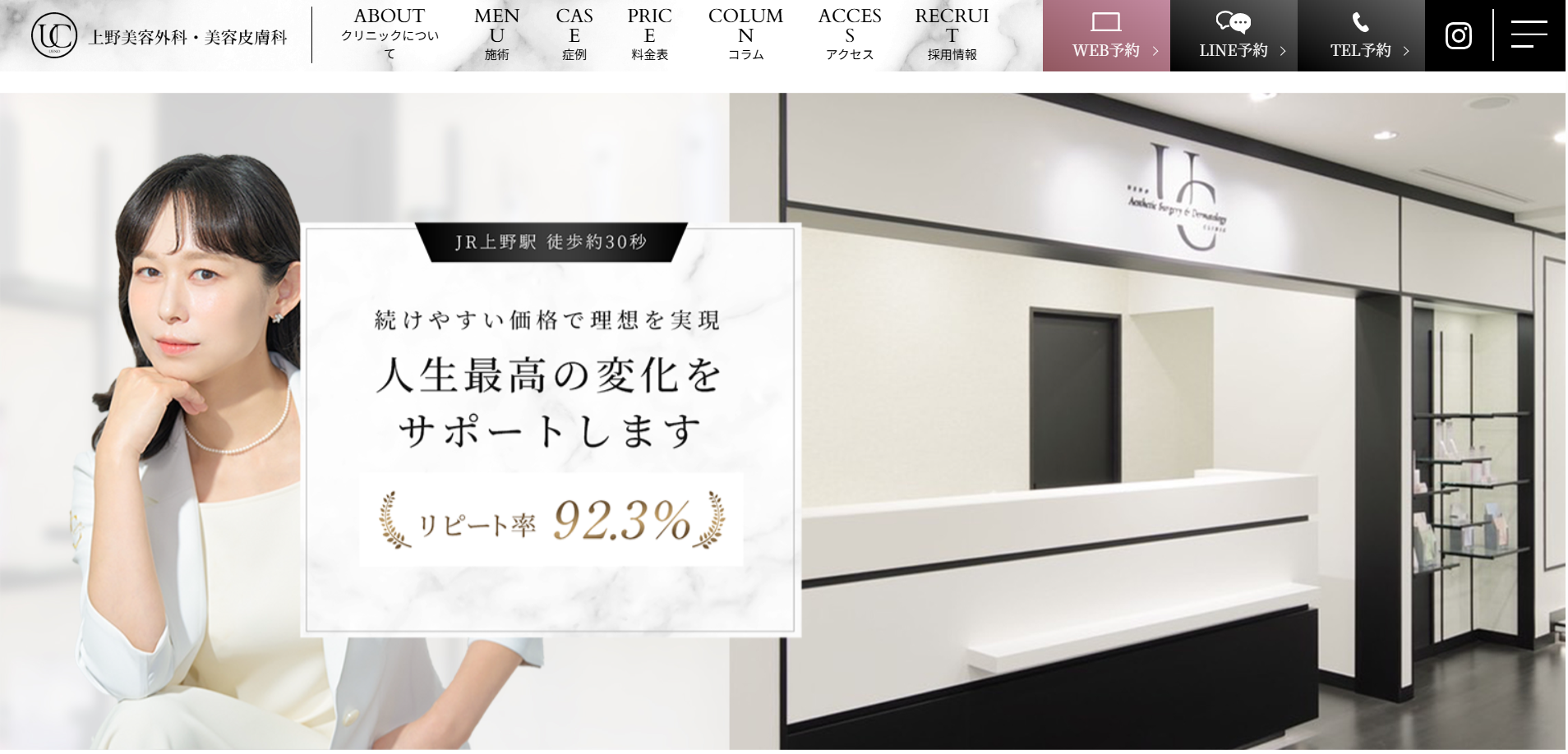 当院は、上野駅より徒歩30秒の位置にあり、リラックスできる空間を作り上げています。一人ひとりに寄り添った施術が受けられると評判です。技術力のある医師を探している人は、ぜひ上野美容外科・美容皮膚科へご相談ください。
